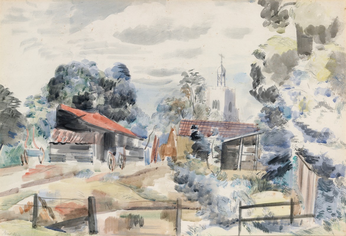 "Hillingdon Church, London" is part of a series of works that Nash created during his early career, focusing on rural and suburban scenes around London. These works are notable for their detailed observation and the way they capture the atmosphere of the English countryside. Nash's ability to convey a sense of place and mood in his landscapes has been widely recognized and appreciated.
