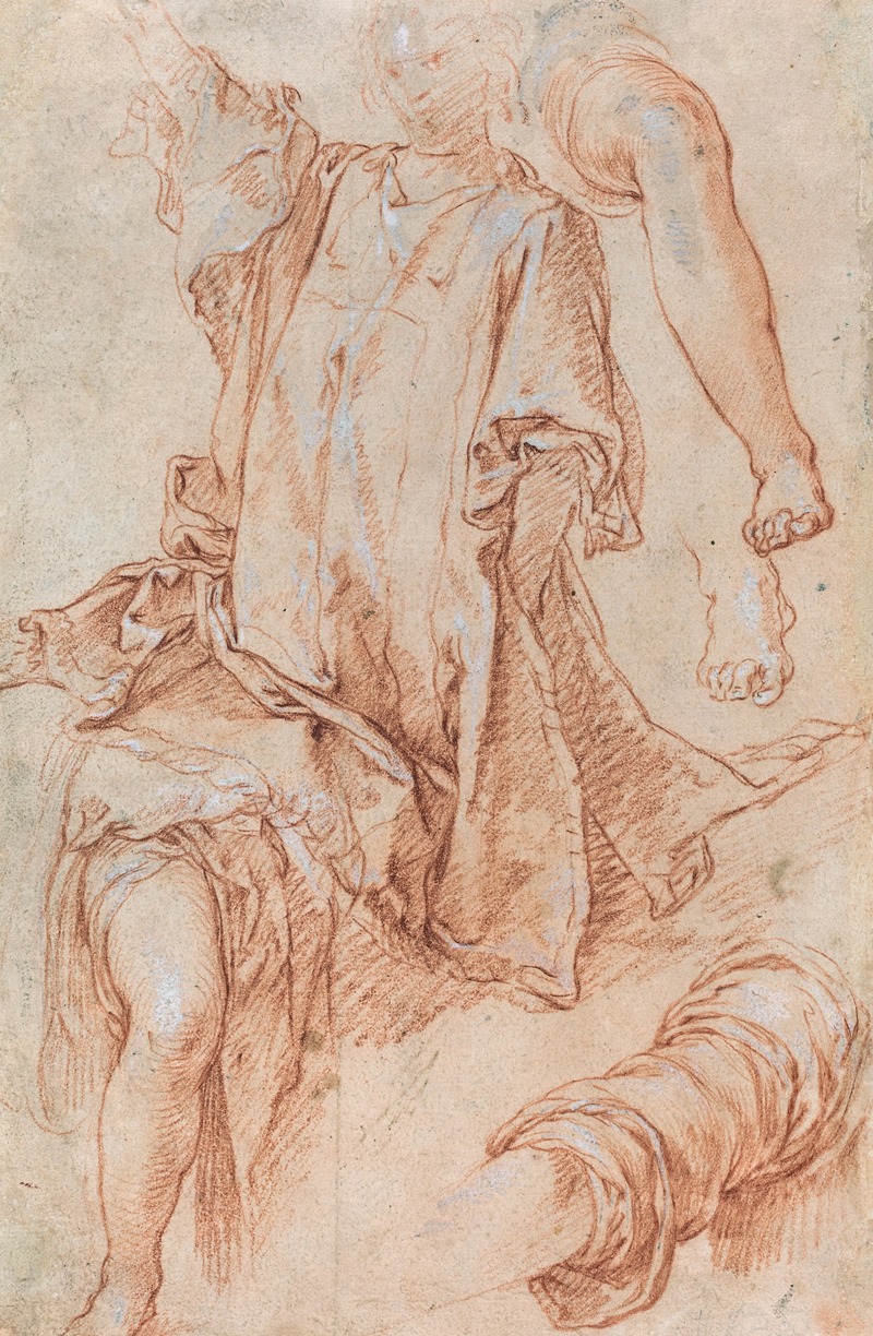 Abraham Bloemaert (1566–1651) was a prominent Dutch painter and printmaker, known for his contributions to the Dutch Golden Age of painting. One of his notable works is "Studies of Legs and Drapery," which exemplifies his skill in drawing and his keen interest in the human form and the intricate details of fabric.