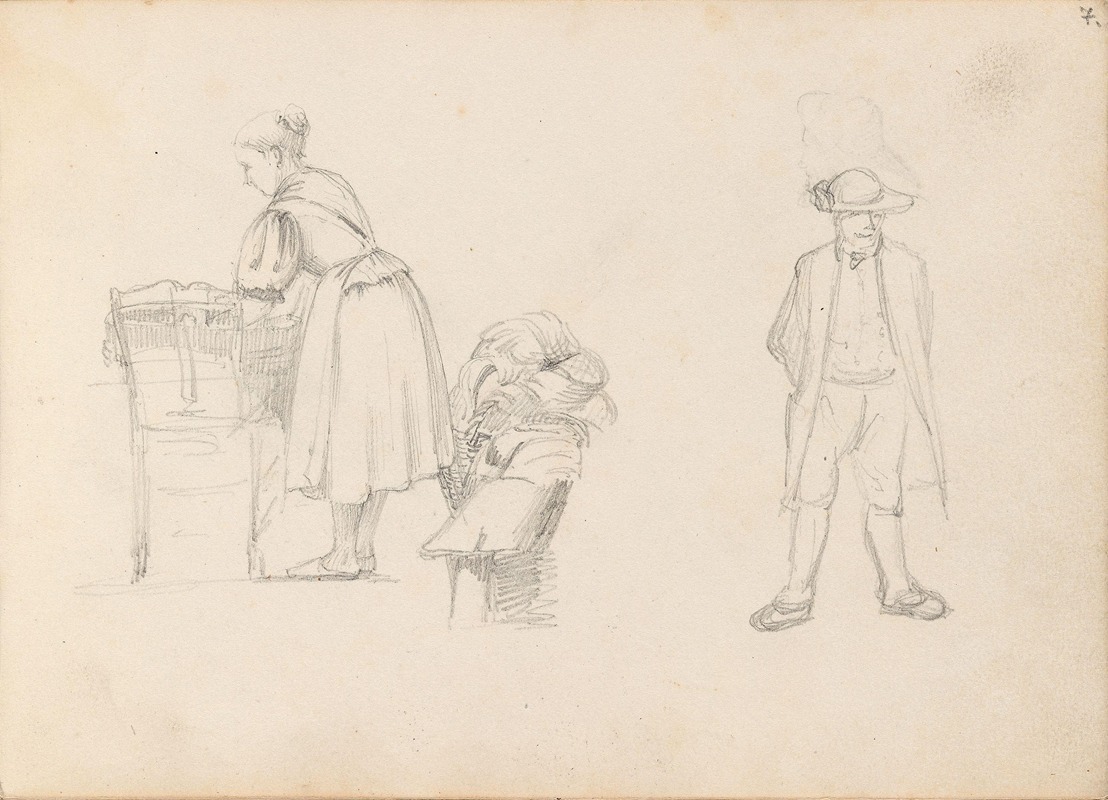 Adolph Tidemand (1814-1876) was a prominent Norwegian painter known for his detailed and realistic depictions of Norwegian folk life and traditions. One of his notable works is "Laundry; standing human figure," which exemplifies his dedication to capturing everyday scenes with a high degree of authenticity and cultural significance.