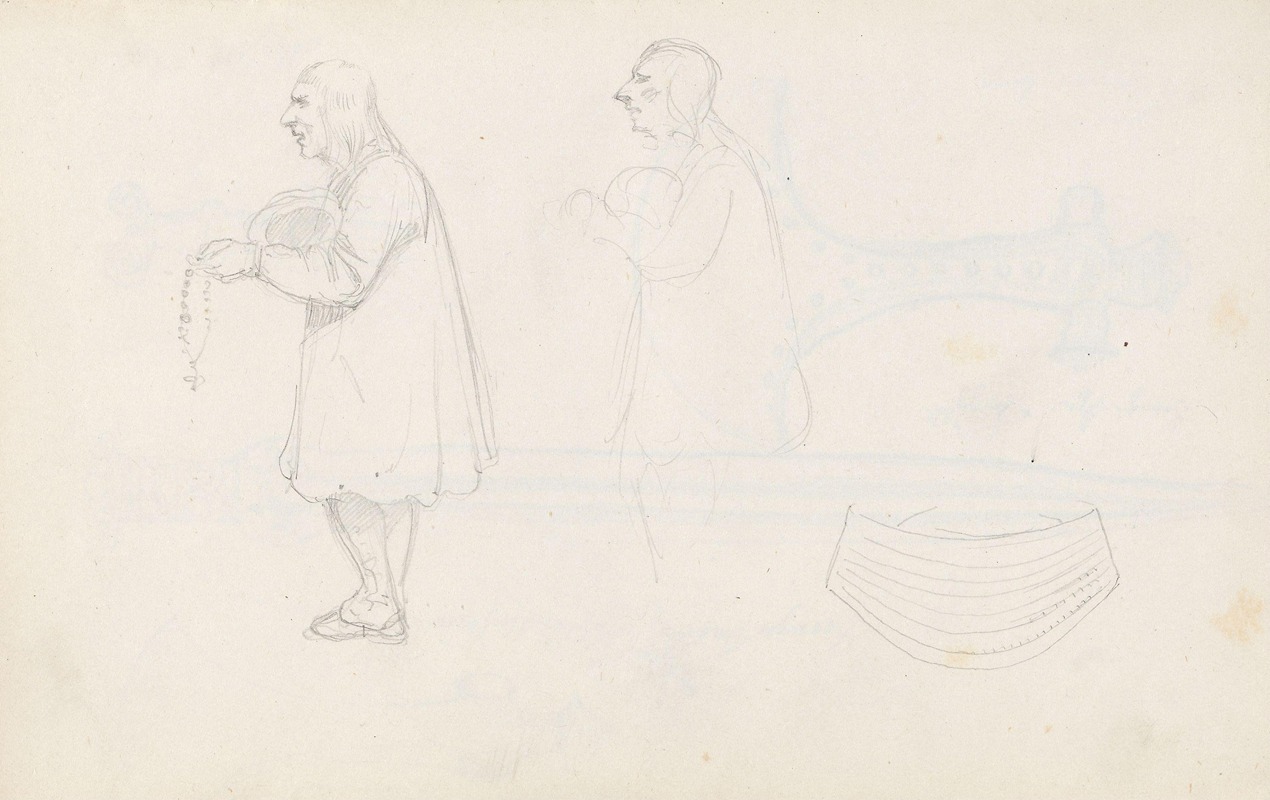 The artwork is a study, which suggests that it was likely a preparatory work rather than a finished painting. Studies were commonly used by artists to explore composition, anatomy, or thematic elements before committing to a final piece. In this particular study, Tidemand focuses on a male figure holding a rosary, a religious object associated with Catholic devotion. The inclusion of the rosary indicates a connection to spiritual or religious themes, which were often present in Tidemand's works, as he sought to capture the cultural and spiritual life of Norway.
