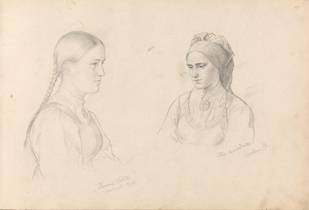In summary, Adolph Tidemand's "Torond Olsdatter Aasland; Tone Anundsdatter" is a reflection of the artist's dedication to portraying Norwegian life with authenticity and respect. While specific details about the subjects are scarce, the painting stands as a representation of the broader themes of national identity and cultural heritage that Tidemand sought to capture throughout his career.