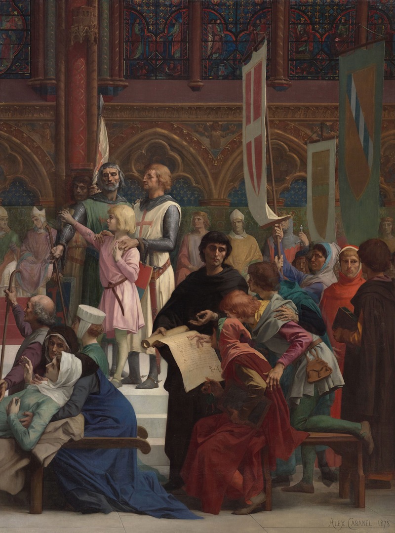 Cabanel, a prominent figure in the French academic art tradition, created this work in 1848. The painting reflects the 19th-century fascination with medieval history and the romanticized portrayal of historical figures. Cabanel was known for his meticulous attention to detail and his ability to convey narrative through composition and expression, qualities that are evident in this piece.
