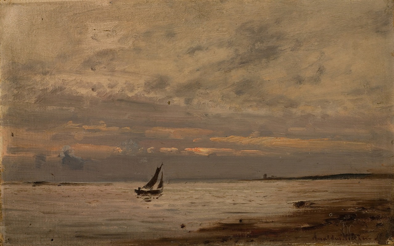 Amaldus Nielsen (1838–1932) was born in Mandal, Norway, and studied art in both Copenhagen and Düsseldorf, where he was influenced by the Düsseldorf School of painting. This movement emphasized detailed and realistic depictions of nature, which became a defining characteristic of Nielsen's work. Upon returning to Norway, Nielsen dedicated himself to painting the landscapes and coastal scenes of his homeland, often working en plein air to capture the immediacy and authenticity of the natural environment.
