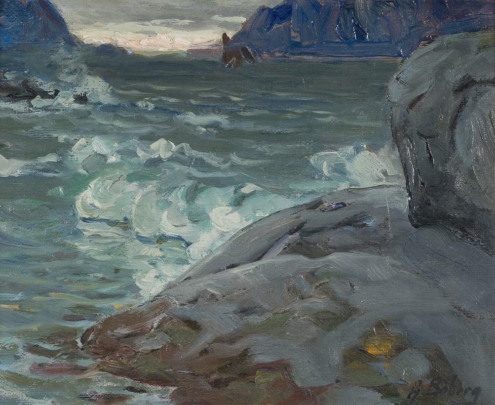 "Beach. Study from North Norway" is a testament to Boberg's skill and passion for the landscapes of northern Norway. It reflects her commitment to exploring the interplay between nature and art, and her ability to translate the beauty of the natural world onto canvas. Her legacy is preserved in the continued admiration of her works, which offer a glimpse into the pristine and powerful landscapes that inspired her.