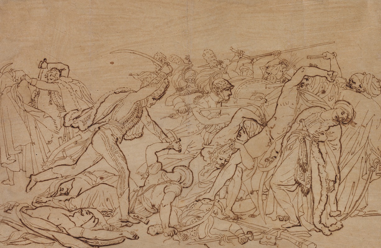 In this study, Girodet-Trioson explores the composition, figures, and emotional intensity that would later characterize the final painting. The work reflects his ability to capture dynamic movement and dramatic tension, hallmarks of his artistic style. While the study itself may lack the polished details of the completed piece, it provides valuable insight into the artist's creative process and his approach to historical subjects.