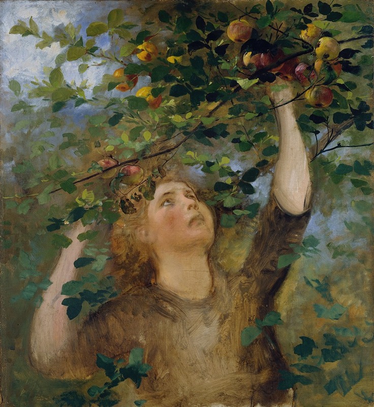 Today, Apfelpflückendes Mädchen is appreciated as part of Romako's broader body of work, which includes portraits, historical scenes, and genre paintings. His art is celebrated for its emotional depth and its role in the transition from traditional academic painting to more modern forms of expression. The painting is held in a private collection or museum, though specific details about its current location and provenance are not widely documented.