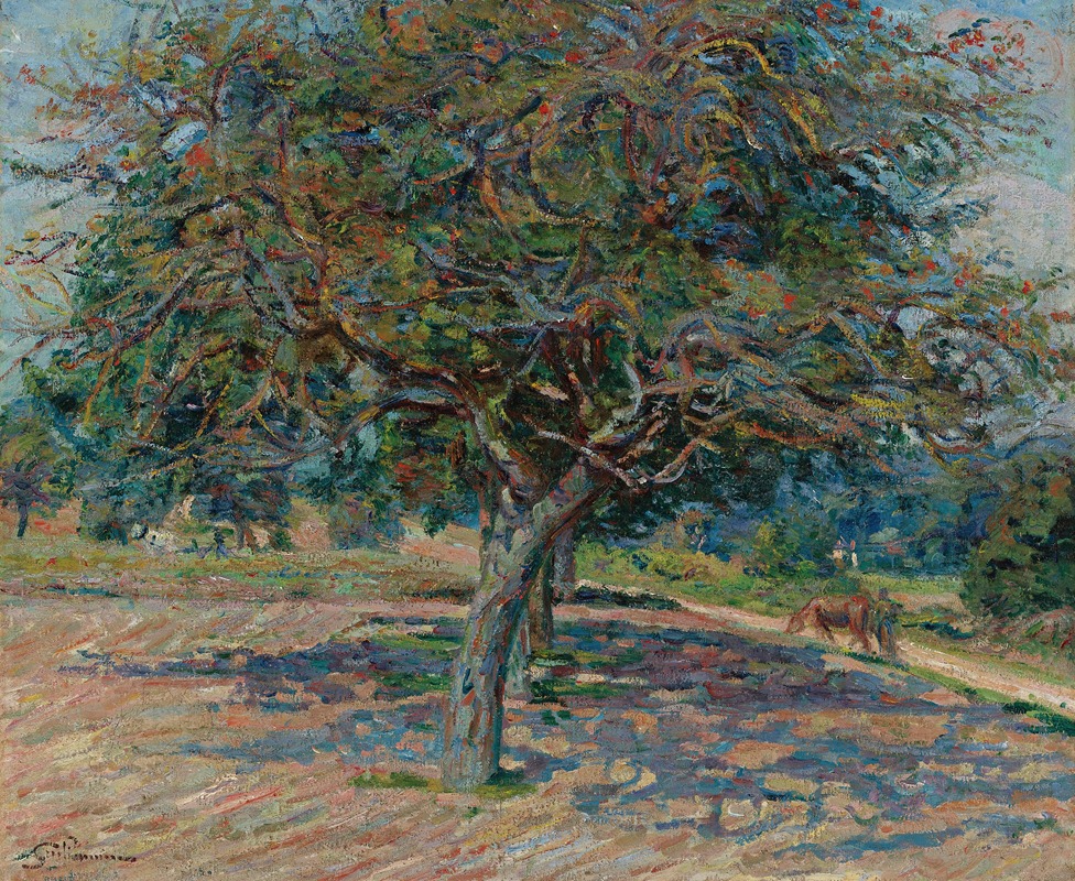 "Arbres En Île-De-France" reflects Guillaumin's Impressionist style, which emphasizes the effects of light and atmosphere on the landscape. Like many of his contemporaries, Guillaumin often painted en plein air (outdoors) to observe and depict the changing qualities of natural light directly. His use of bold, expressive brushstrokes and a vivid color palette is evident in this piece, showcasing his ability to convey the vitality and essence of the scenery.