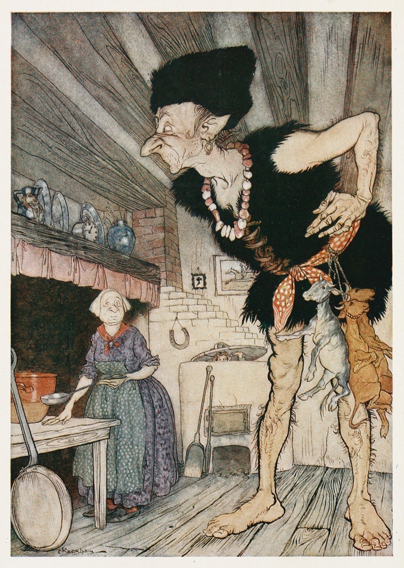 A hand-painted replica of Arthur Rackham’s masterpiece Fee-fi-fo-fum, I smell the blood of an Englishman, meticulously crafted by professional artists to capture the true essence of the original. Each piece is created with museum-quality canvas and rare mineral pigments, carefully painted by experienced artists with delicate brushstrokes and rich, layered colors to perfectly recreate the texture of the original artwork. Unlike machine-printed reproductions, this hand-painted version brings the painting to life, infused with the artist’s emotions and skill in every stroke. Whether for personal collection or home decoration, it instantly elevates the artistic atmosphere of any space.