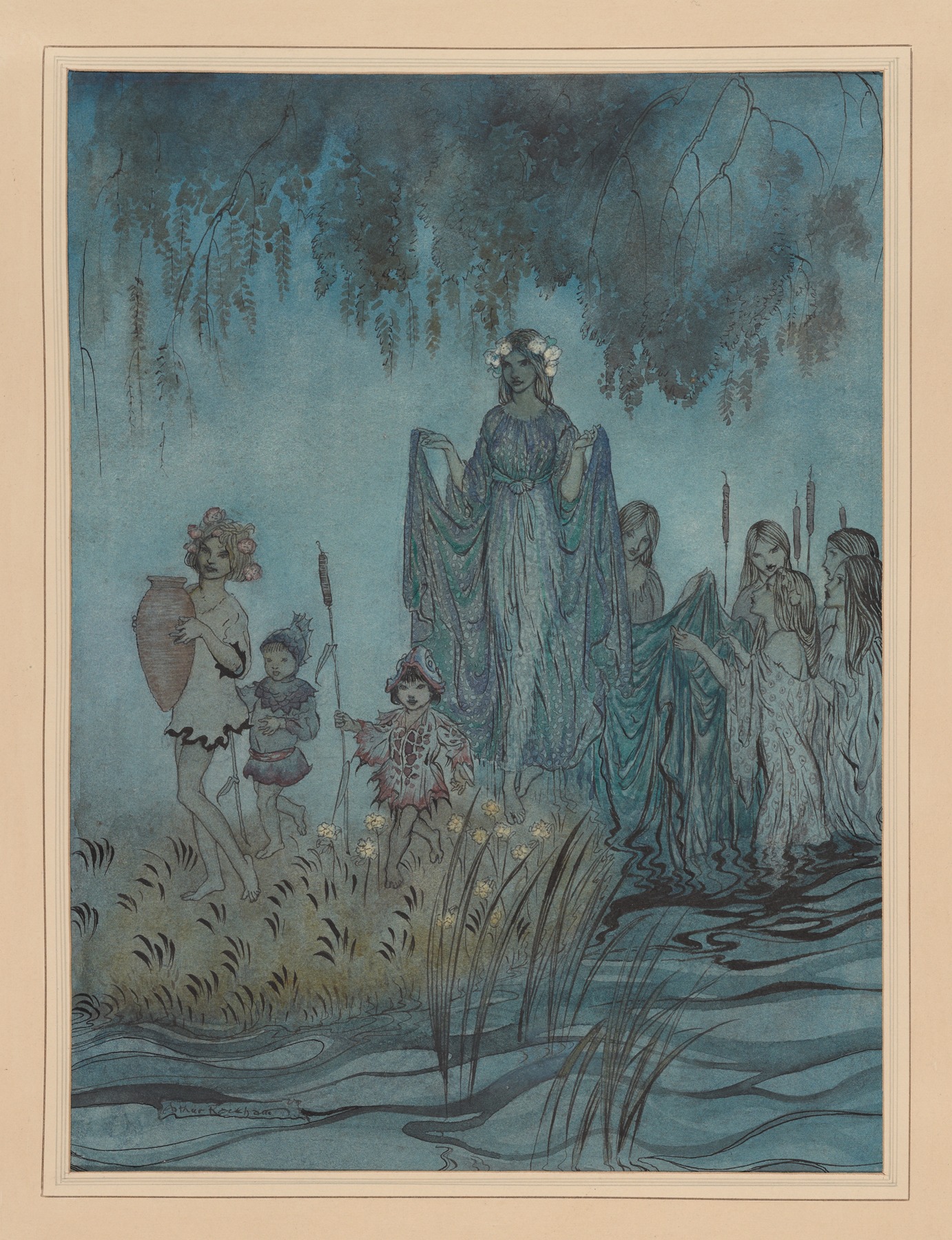 In summary, Arthur Rackham's "Sabrina rises" is a significant illustration that captures a key moment in John Milton's "Comus." Through his detailed and ethereal style, Rackham enhances the narrative of the masque, offering a visual representation of its themes. His work continues to be appreciated for its artistic merit and its contribution to the tradition of illustrating classic literature.