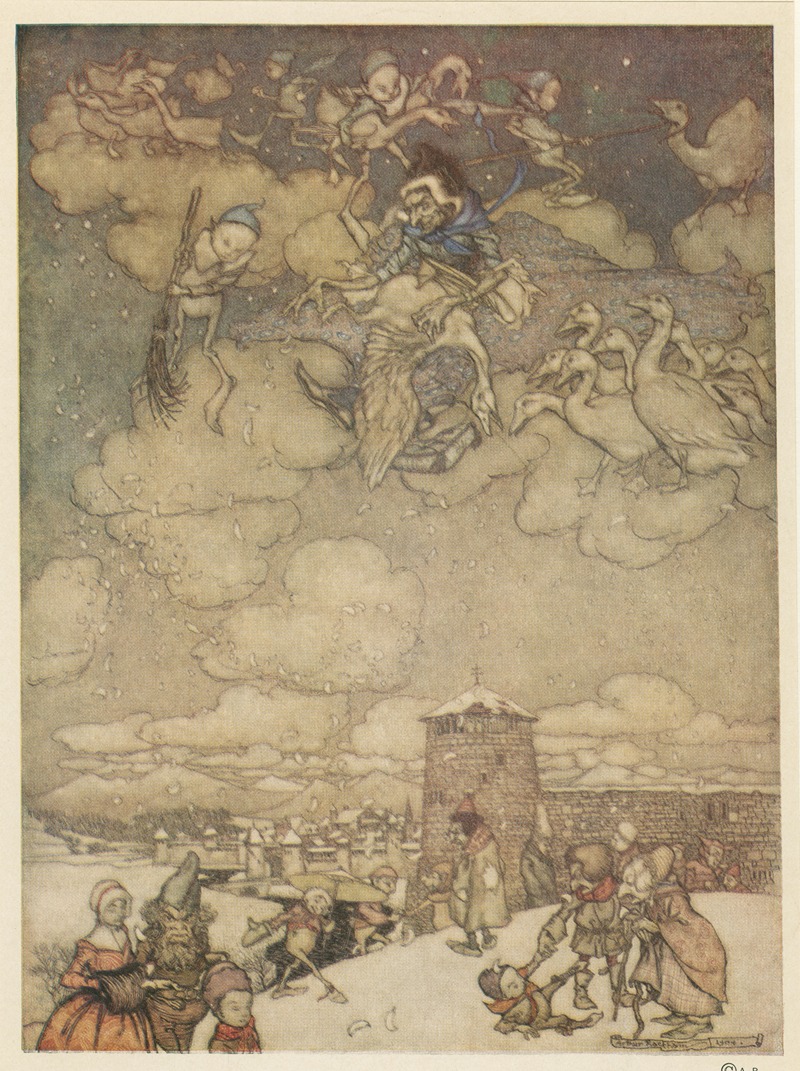 A hand-painted replica of Arthur Rackham’s masterpiece Mother Goose., meticulously crafted by professional artists to capture the true essence of the original. Each piece is created with museum-quality canvas and rare mineral pigments, carefully painted by experienced artists with delicate brushstrokes and rich, layered colors to perfectly recreate the texture of the original artwork. Unlike machine-printed reproductions, this hand-painted version brings the painting to life, infused with the artist’s emotions and skill in every stroke. Whether for personal collection or home decoration, it instantly elevates the artistic atmosphere of any space.