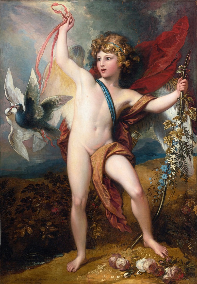 A hand-painted replica of Benjamin West’s masterpiece Cupid Releasing Two Doves, meticulously crafted by professional artists to capture the true essence of the original. Each piece is created with museum-quality canvas and rare mineral pigments, carefully painted by experienced artists with delicate brushstrokes and rich, layered colors to perfectly recreate the texture of the original artwork. Unlike machine-printed reproductions, this hand-painted version brings the painting to life, infused with the artist’s emotions and skill in every stroke. Whether for personal collection or home decoration, it instantly elevates the artistic atmosphere of any space.