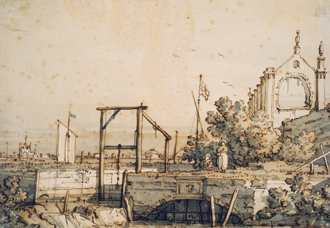 A hand-painted replica of Canaletto’s masterpiece Capriccio with a Lock Gate by a River, meticulously crafted by professional artists to capture the true essence of the original. Each piece is created with museum-quality canvas and rare mineral pigments, carefully painted by experienced artists with delicate brushstrokes and rich, layered colors to perfectly recreate the texture of the original artwork. Unlike machine-printed reproductions, this hand-painted version brings the painting to life, infused with the artist’s emotions and skill in every stroke. Whether for personal collection or home decoration, it instantly elevates the artistic atmosphere of any space.