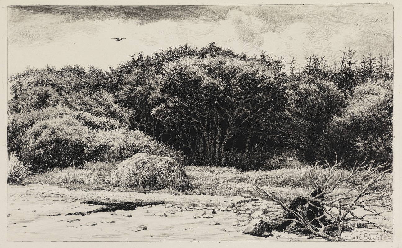 Hornbæk is a small town located on the northern coast of Zealand, Denmark. It has long been a popular destination for artists and tourists alike, known for its picturesque landscapes and coastal scenery. The Hornbæk Plantation, specifically, is a forested area near the town, offering a tranquil setting that has inspired many artists. Bloch's painting captures this serene environment, reflecting the natural beauty and peacefulness of the Danish countryside.
