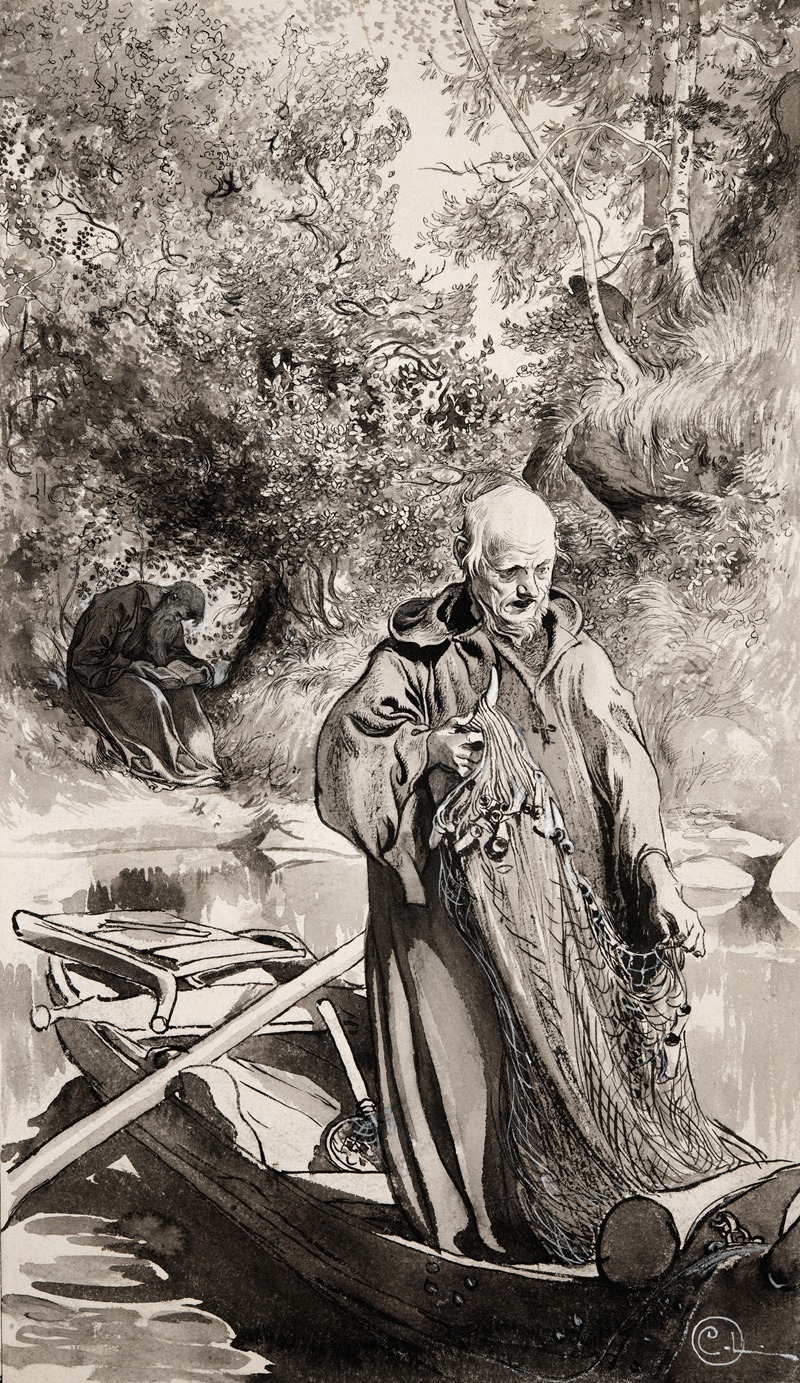 Carl Larsson, known for his contributions to the Arts and Crafts movement and his depictions of idyllic Swedish life, created this illustration as part of his work to visually interpret Rydberg's literary masterpiece. Larsson's artistic style is characterized by his use of delicate lines, soft colors, and an ability to capture emotion and atmosphere, which are evident in this particular illustration.