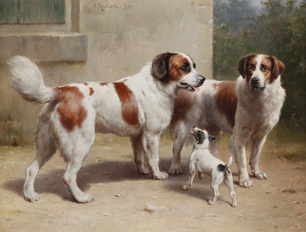 Reichert's paintings were well-received during his lifetime, and he exhibited his works in various art shows and galleries. His ability to capture the essence of his animal subjects earned him a dedicated following, and his works were sought after by collectors across Europe. Reichert's paintings often featured a variety of dog breeds, each rendered with careful attention to their unique features and temperaments.