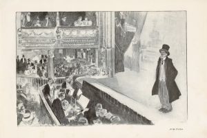 "At the Horse Show" exemplifies Gibson's skill in capturing the nuances of social interactions and the subtleties of fashion. The detailed line work and the expressive faces of the characters highlight his mastery in illustration. The scene not only reflects the leisure activities of the upper class but also serves as a commentary on the social dynamics and gender roles of the period.