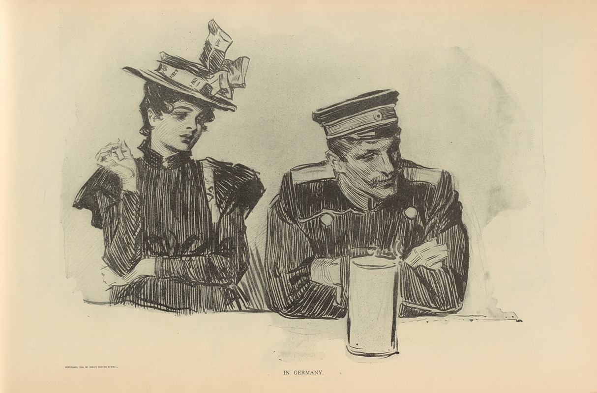 In summary, while detailed information about "In Germany" by Charles Dana Gibson is limited, it is likely that the illustration reflects his engagement with the socio-political issues of his time, using his distinctive style to comment on the world around him. As with much of Gibson's work, it serves as a window into the past, offering insights into the cultural and political climate of the early 1900s.
