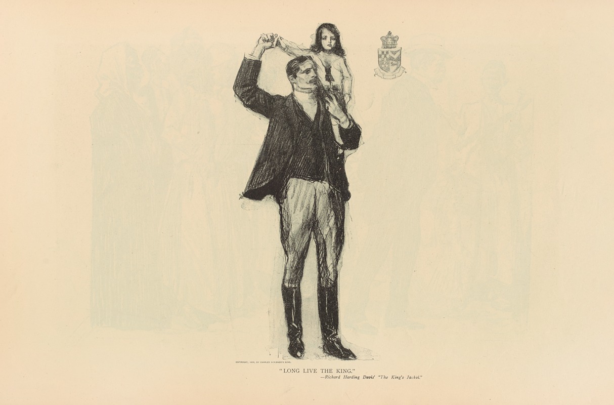 "Long Live the King" is an illustration by the renowned American artist Charles Dana Gibson, best known for his creation of the iconic "Gibson Girl," a representation of the idealized American woman at the turn of the 20th century. Gibson's work was highly influential in shaping the visual culture of the era, and his illustrations were widely published in magazines such as Life, Scribner's, and Harper's.