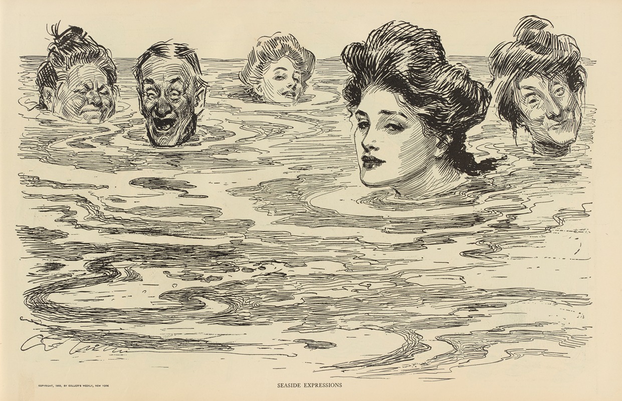 Gibson's illustrations, including "Seaside Expressions," were widely published in magazines such as Life, Harper's Weekly, and Scribner's, reaching a broad audience and influencing public perceptions of fashion and social behavior. His work played a role in shaping the visual culture of the time, and the Gibson Girl became an enduring symbol of American femininity.