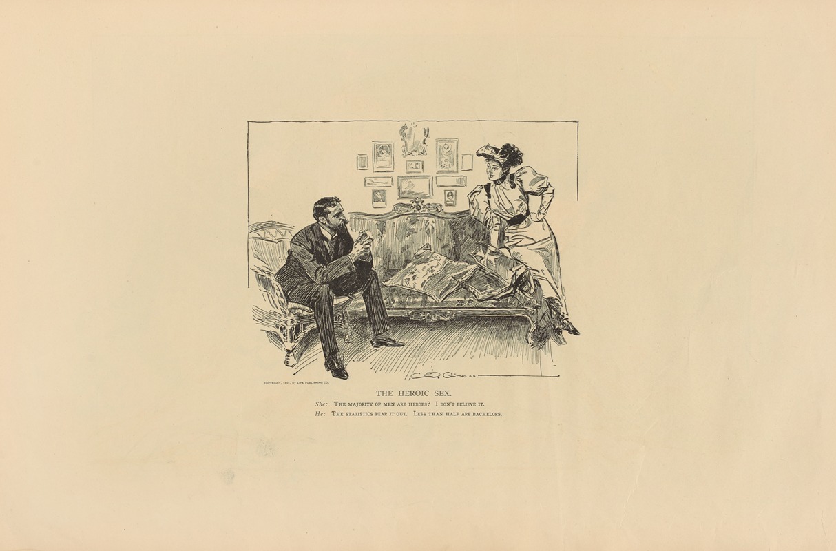 Gibson's work, including "The Heroic Sex," was widely published in magazines such as Life, Collier's Weekly, and Harper's Weekly, which were popular platforms for illustrations and commentary during the time. His illustrations were not only admired for their artistic quality but also for their ability to capture and critique societal trends. "The Heroic Sex" exemplifies Gibson's skill in using visual storytelling to convey complex ideas about gender and society.