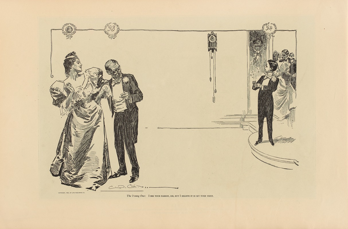 In summary, "The young one; I beg your pardon, sir, but I believe it is my turn next" is a testament to Charles Dana Gibson's skill as an illustrator and his insightful commentary on social interactions. His work remains a valuable part of American art history, offering a window into the cultural and social fabric of his time.