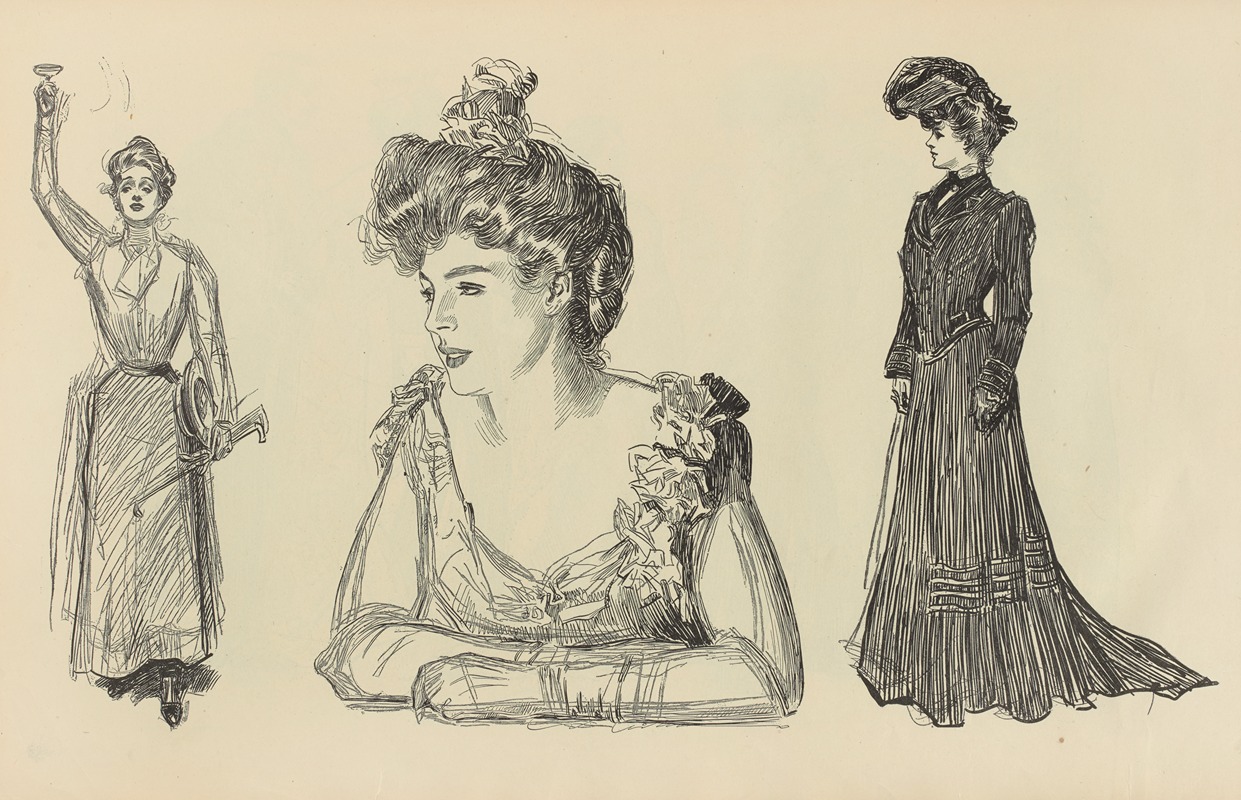The "Gibson Girl" was characterized by her elegant and independent demeanor, often depicted as tall, slender, and graceful, with an hourglass figure and upswept hair. This idealized image became a cultural phenomenon, influencing fashion and societal norms. Gibson's illustrations captured the spirit of the Progressive Era, reflecting the changing roles of women in society as they began to seek more independence and opportunities outside the domestic sphere.
