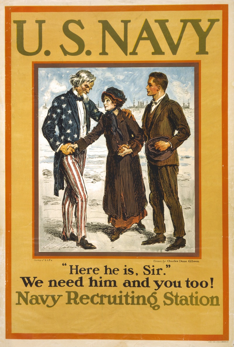 Overall, Charles Dana Gibson's "U.S. Navy–Here he is, sir" is a testament to his artistic talent and his ability to engage with the cultural and social issues of his time. Through his illustrations, Gibson left a lasting impact on American visual culture, and his work continues to be studied and appreciated for its artistic merit and historical significance.