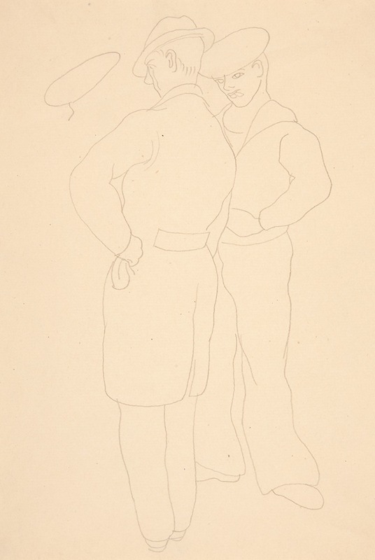 The painting depicts two male figures, one of whom is dressed in a sailor's uniform. This subject matter reflects Demuth's interest in themes of identity and companionship, which were significant aspects of his personal life. As a gay man in the early 20th century, Demuth often infused his work with coded references to his sexuality and the complexities of human relationships.