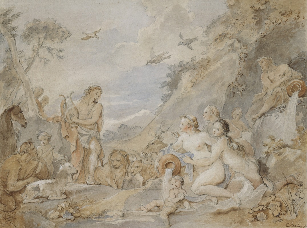 Natoire's painting reflects the 18th-century European interest in classical antiquity and the revival of mythological subjects in art. During this period, artists often looked to ancient myths for inspiration, finding in them a rich source of allegory and symbolism. Orpheus, with his extraordinary musical abilities, was a particularly popular subject, as his story resonated with the Rococo era's appreciation for art, beauty, and the power of music.