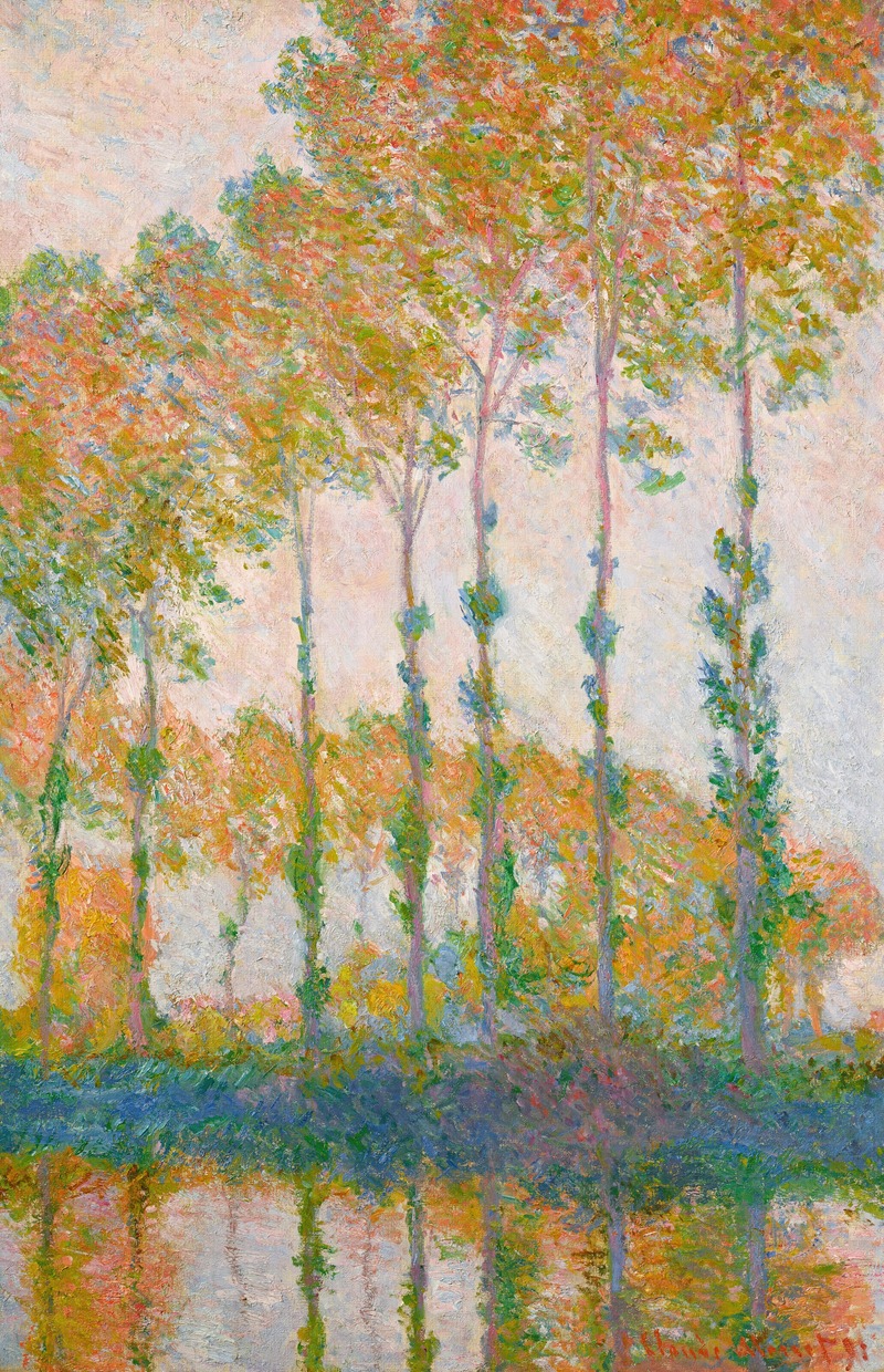 This particular painting is part of Monet's series of works focusing on poplar trees, which he painted in the 1890s. The poplar series is notable for its exploration of the effects of light and color, as well as its demonstration of Monet's fascination with nature and the changing seasons. "Peupliers au bord de l’Epte, automne" translates to "Poplars on the Banks of the Epte, Autumn," indicating the specific location and time of year depicted in the painting.