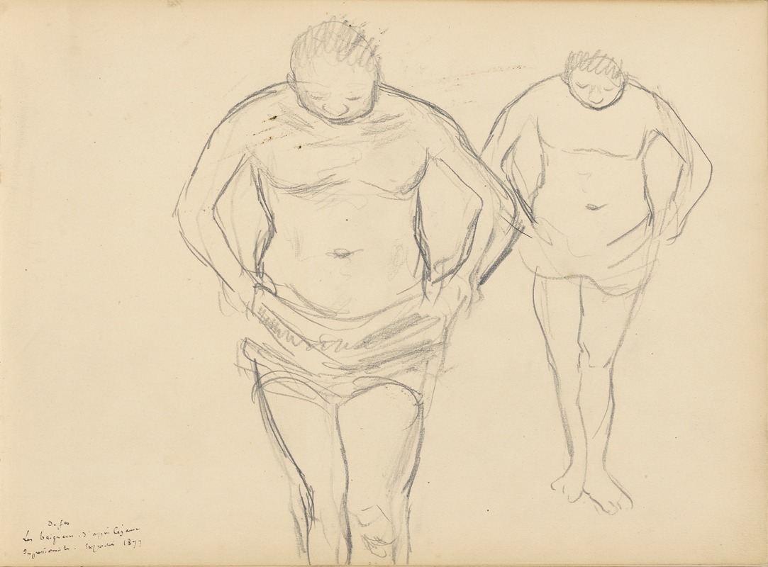 Edgar Degas, a prominent French artist known for his contributions to Impressionism, created "Copies of Cézanne’s Bathers" as part of his exploration of the works of other artists. This piece reflects Degas's admiration for Paul Cézanne, another influential figure in the development of modern art. Cézanne's original "Bathers" series is renowned for its innovative approach to form and color, which significantly impacted the trajectory of 20th-century art. Degas's decision to create copies of Cézanne's work highlights the interconnectedness of artists during this period and their mutual influence on each other's styles and techniques.