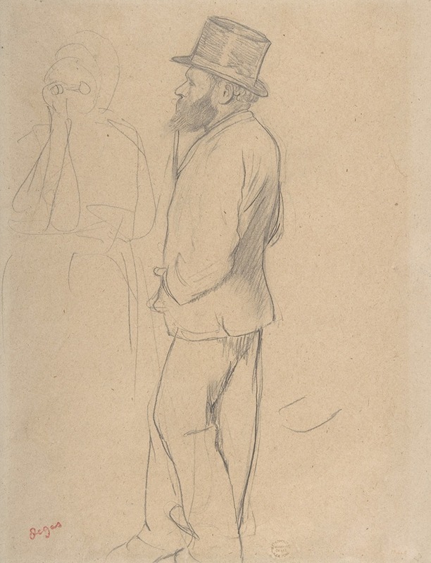 Degas and Manet were both pivotal figures in the Impressionist movement, although Degas preferred to be associated with the term "Realist." Their friendship and mutual influence are well-documented, and "Edouard Manet at the Races" serves as a testament to their relationship. The painting is notable for its informal and candid portrayal of Manet, capturing him in a moment of leisure rather than in a formal setting. This approach reflects Degas' interest in depicting modern life and his departure from traditional historical and mythological subjects.