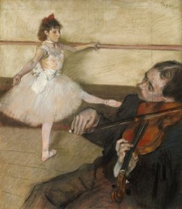 The composition of "Etude de danseuses" is characteristic of Degas's style, which often includes unusual angles and perspectives. He frequently employed techniques such as cropping and asymmetrical balance, which were influenced by his interest in photography and Japanese prints. These elements can be seen in the way Degas frames his subjects, creating a sense of immediacy and capturing a moment in time.