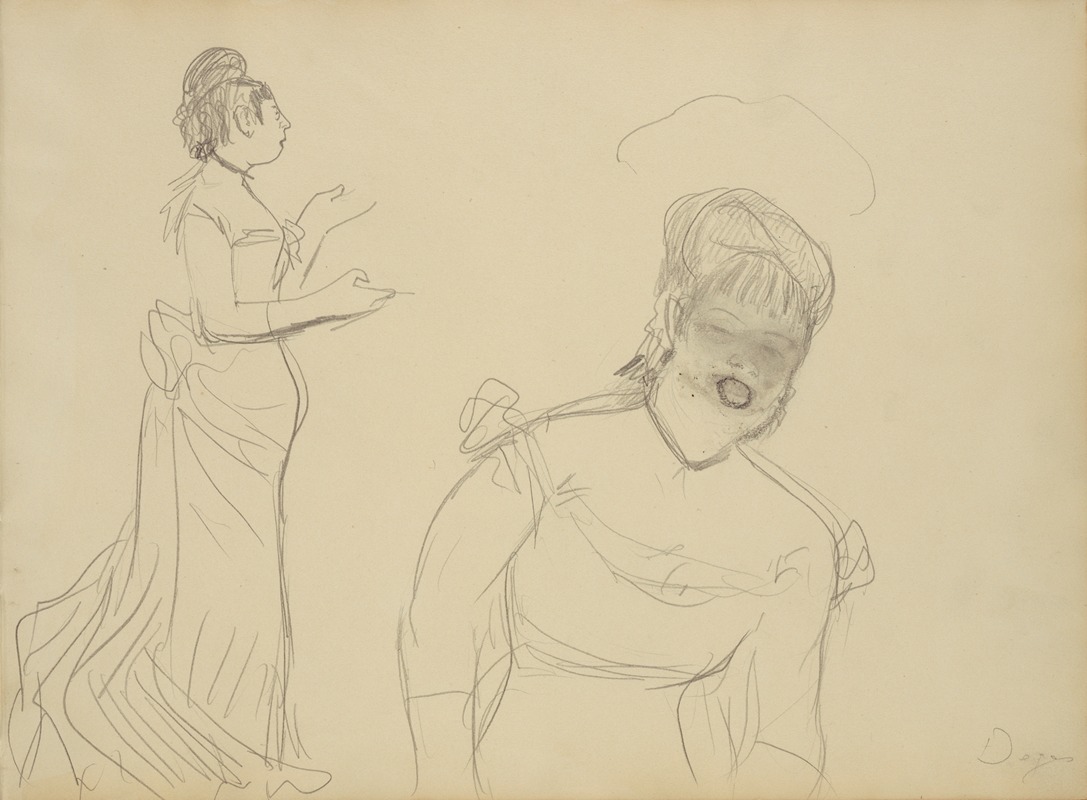 Degas's sketches capture the essence of these venues, focusing on the performers, particularly the singers who were central to the entertainment. His interest in such subjects is consistent with his broader artistic focus on capturing fleeting moments and the movement of the human figure. Degas was known for his ability to convey the dynamism of modern life, and his café singer sketches are no exception.