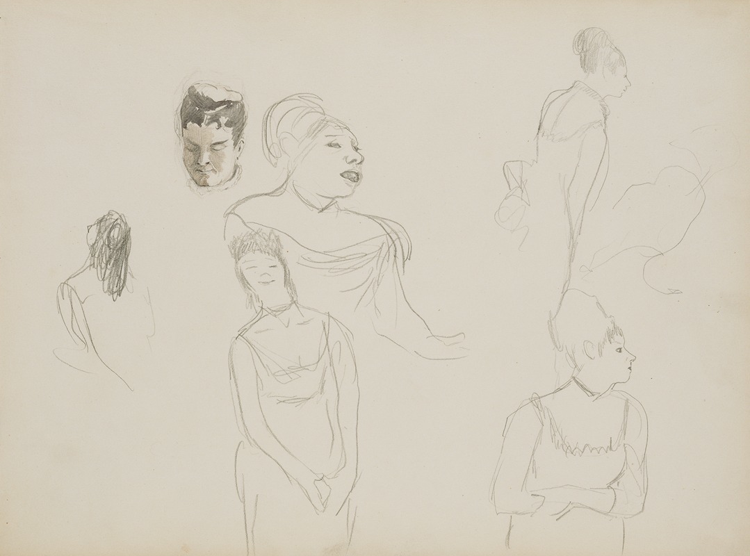 Further details about the provenance or current location of "Sketches of Café Singers" are not widely available, and it remains one of the many examples of Degas's prolific output as an artist deeply attuned to the rhythms and textures of his time.