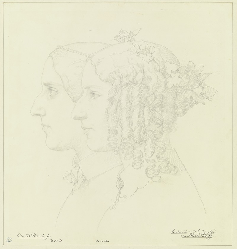 Antonie von Blittersdorff und Ludowika von Blittersdorff, verehelichte von Rauch, im Profil nach links