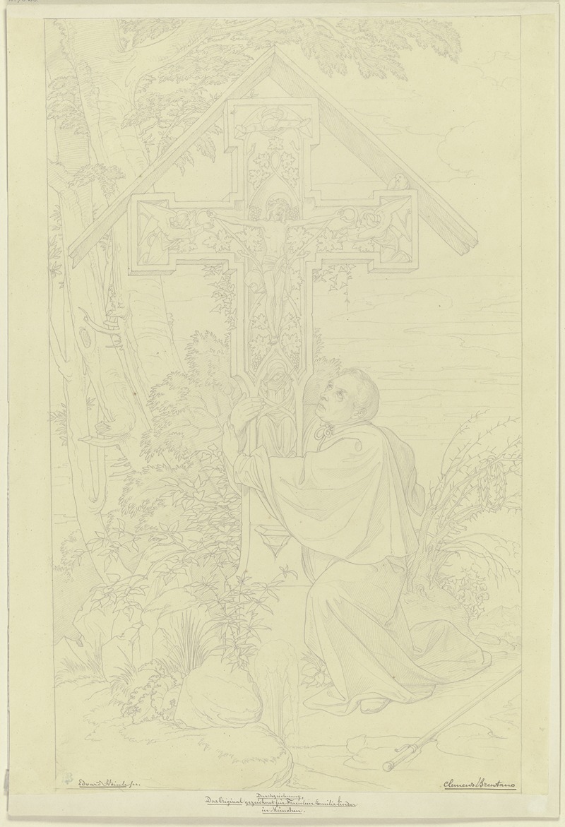Gedenkblatt an Clemens Brentano, ein Kreuz umfassend