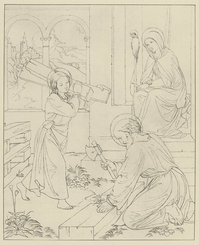 "Heilige Familie" portrays the Holy Family, a common subject in Christian art that includes the Virgin Mary, Saint Joseph, and the infant Jesus. Steinle's interpretation of this theme is marked by a serene and intimate depiction, focusing on the familial bond and divine nature of the figures. The composition typically reflects Steinle's attention to detail and his ability to convey emotion through subtle expressions and gestures.