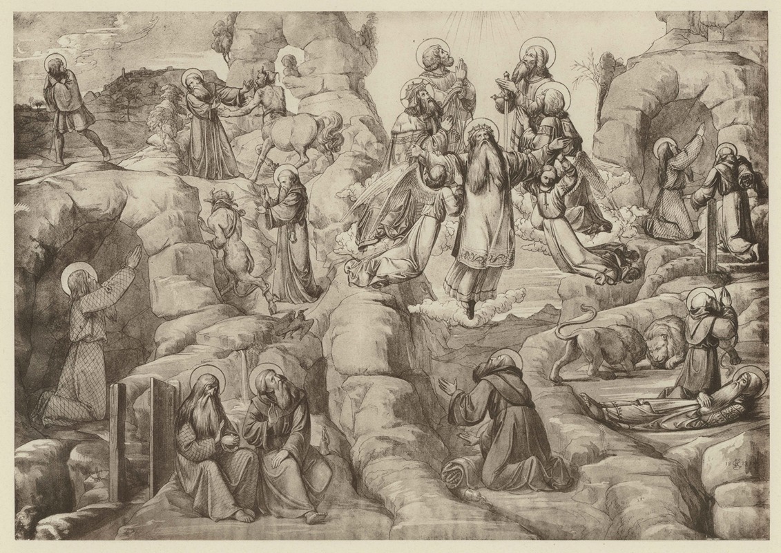 Beyond its artistic qualities, Leben des heil. Paulinus des Einsiedlers serves as a testament to the 19th-century revival of interest in religious art and the ways in which artists like Steinle sought to bridge the past and present through their work. While specific details about this painting's provenance and reception remain limited, it stands as a representative example of Steinle's contributions to religious art and the broader cultural currents of his time.