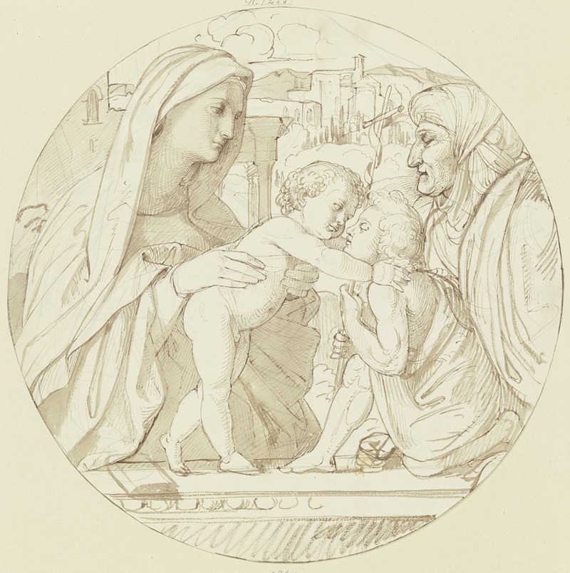 The painting depicts the Virgin Mary with her cousin Elizabeth and the infant John the Baptist. This subject is a common theme in Christian art, often illustrating the familial connection between Jesus and John the Baptist, who would later become an important figure in Christianity as the forerunner of Christ. In Steinle's rendition, the figures are portrayed with a serene and contemplative demeanor, reflecting the piety and sanctity associated with these biblical characters.