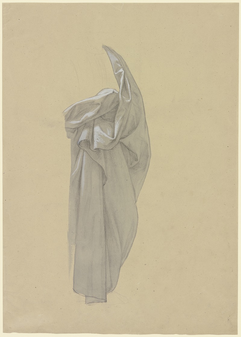 The study of garments would have been a crucial step in Steinle's creative process, providing him with the opportunity to experiment with light, shadow, and texture. These studies allowed him to understand how fabric interacted with the human form and how it could convey movement and emotion. Such attention to detail is evident in his finished works, where the garments often play a significant role in the overall composition, contributing to the narrative and emotional impact of the piece.