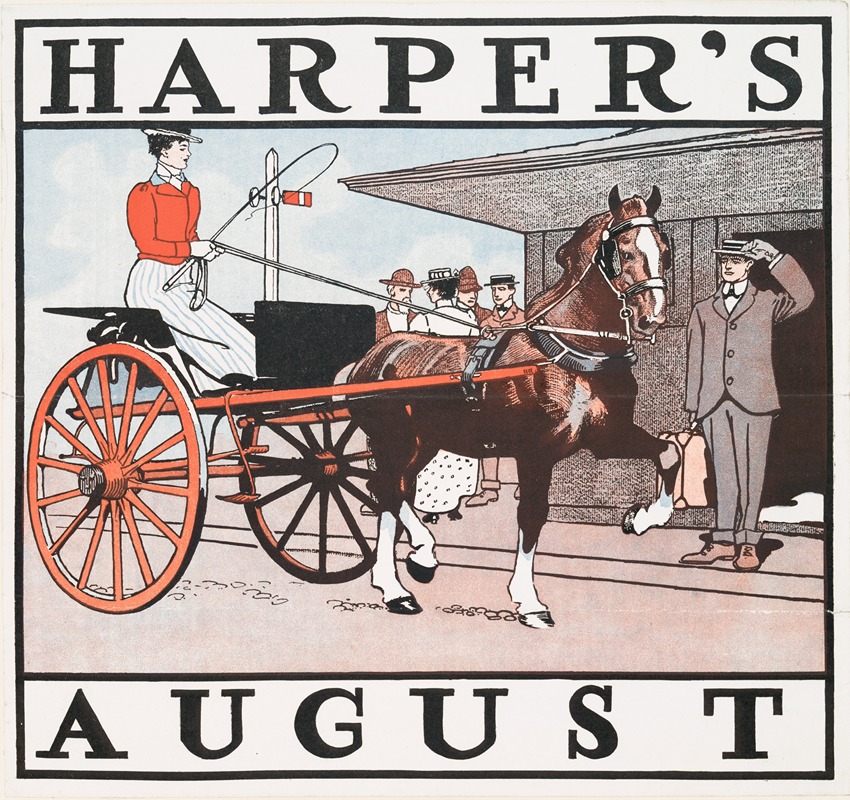 "Harper’s August" is part of a series of posters Penfield designed for Harper's Magazine, each corresponding to a different month. These posters were not only promotional tools for the magazine but also works of art that captured the essence of the time. Penfield's work is characterized by its bold lines, flat colors, and simplified forms, which were influenced by the Art Nouveau movement and the poster art of Europe, particularly the works of French artists like Henri de Toulouse-Lautrec.