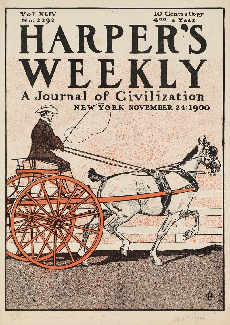 "Harper's Weekly" was a prominent American periodical published by Harper & Brothers from 1857 until 1916. It played a significant role in shaping public opinion during its time, covering a wide range of topics including politics, art, and culture. The magazine was particularly known for its illustrations, which included works by famous artists such as Winslow Homer and Thomas Nast. Edward Penfield's association with "Harper's Weekly" further cemented the publication's reputation for high-quality visual content.