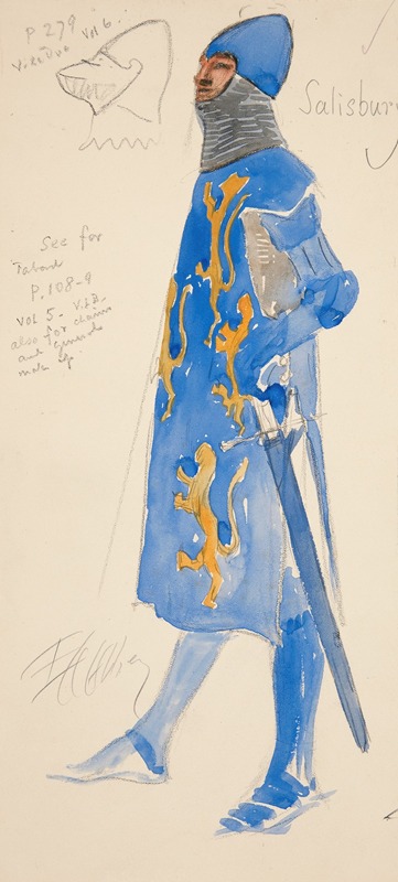 Although Henry Irving's production of "Richard II" was ultimately never staged, Abbey's costume sketches, including the one for "Salisbury," have been preserved and are appreciated for their artistic merit and historical value. They offer insight into the collaborative process between artists and theater practitioners during this period and highlight the importance of visual design in bringing Shakespeare's works to life on stage.