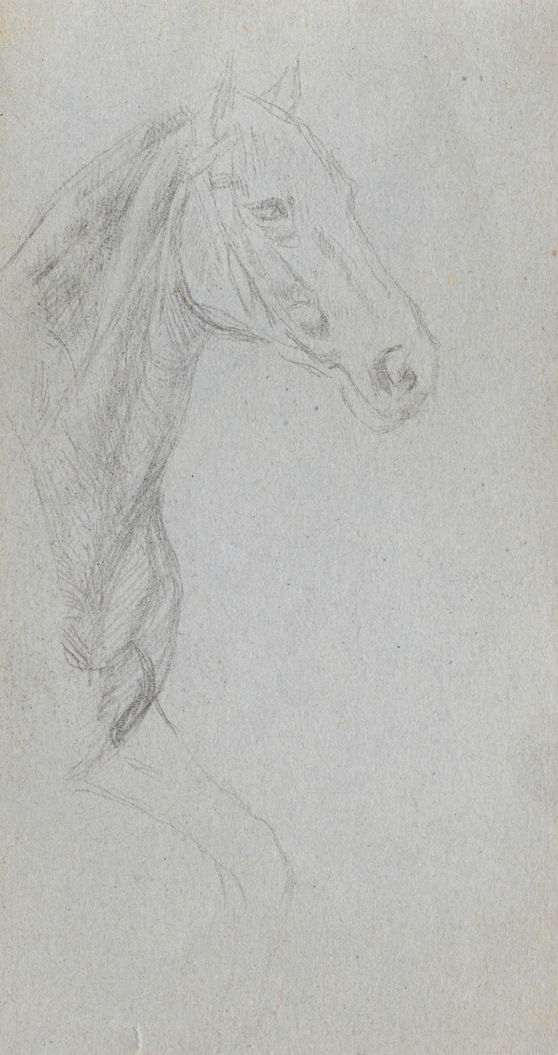 "Study of a Horse" reflects Meissonier's broader artistic philosophy, which emphasized accuracy, dedication to craft, and a deep respect for historical authenticity. His works, including this study, are characterized by their small scale yet immense detail, a combination that set him apart from many of his contemporaries. Meissonier's influence extended beyond his lifetime, as his works continued to be appreciated for their technical mastery and historical significance.