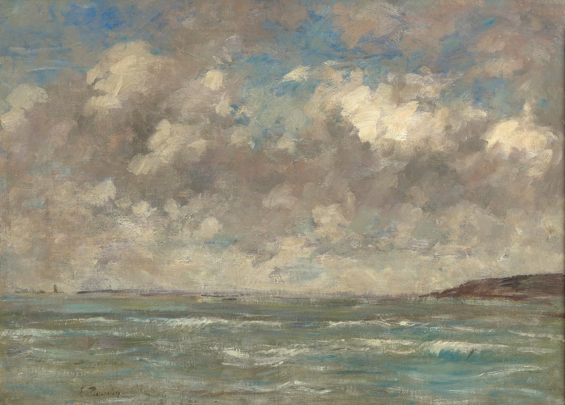 This painting is part of Boudin's extensive series of works focusing on the skies and waterways of northern France. Le Havre, a bustling port city located at the mouth of the Seine River, was a frequent subject in Boudin's oeuvre. The estuary's expansive skies and ever-changing weather conditions provided an ideal setting for his exploration of light and color. In Le Havre, ciel sur l’estuaire, Boudin's characteristic attention to atmospheric effects is evident, with the sky dominating much of the composition. The interplay of clouds, light, and reflections on the water captures the ephemeral beauty of the natural world.