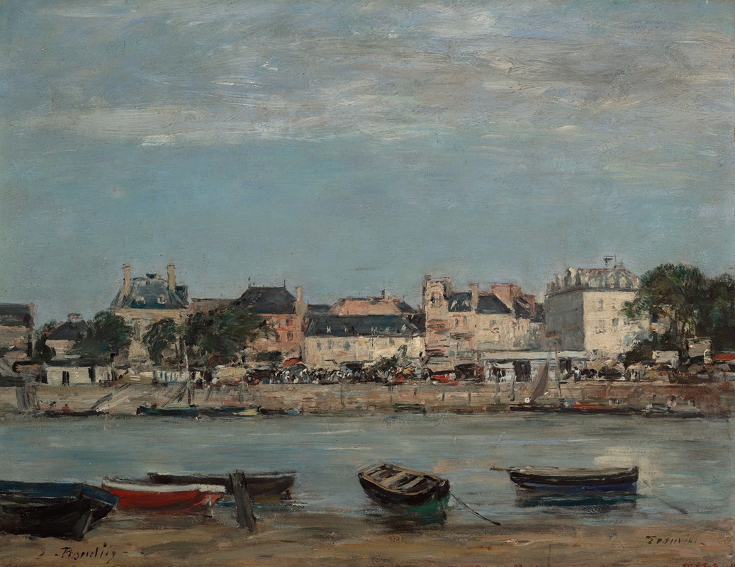 Boudin's work was well-regarded during his lifetime, and he exhibited regularly at the Paris Salon. His paintings of Trouville and other coastal scenes were appreciated for their ability to evoke the mood and atmosphere of the locations he depicted. "The Port of Trouville" is a fine example of his ability to blend naturalistic detail with an impressionistic approach to light and color.