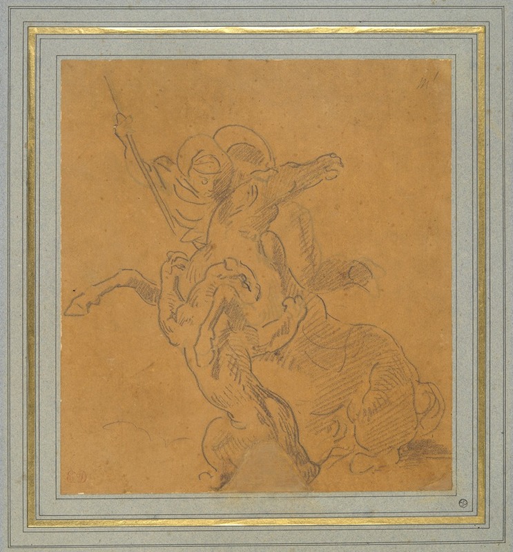 Eugène Delacroix, a prominent French Romantic artist, is renowned for his dynamic compositions and expressive use of color. Among his works, "Lion Attacking a Horse with Rider" stands out as a vivid example of his fascination with dramatic and violent themes. Delacroix's interest in such subjects was influenced by his admiration for the works of earlier masters like Peter Paul Rubens and the dramatic narratives found in literature and history.