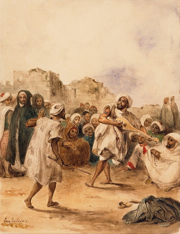 Eugène Delacroix, a leading figure of the French Romantic movement, is renowned for his vibrant use of color and expressive brushwork. Among his many works, "Strolling Players" is a notable painting that reflects his fascination with theatrical subjects and his ability to capture dynamic movement and emotion.
