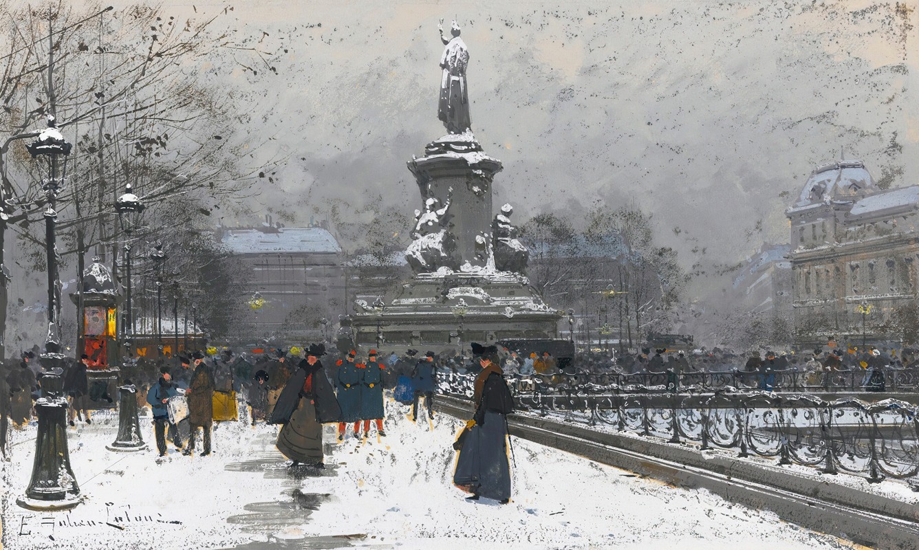 Eugène Galien-Laloue (1854–1941) was a French painter known for his depictions of Parisian cityscapes, rural scenes, and landscapes. His works often captured the charm and vibrancy of late 19th and early 20th-century France. Among his many paintings, La Place de la République is a notable example of his ability to portray urban life with meticulous detail and atmospheric effects.